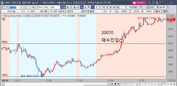 8월 9일 항셍 차트입니다.